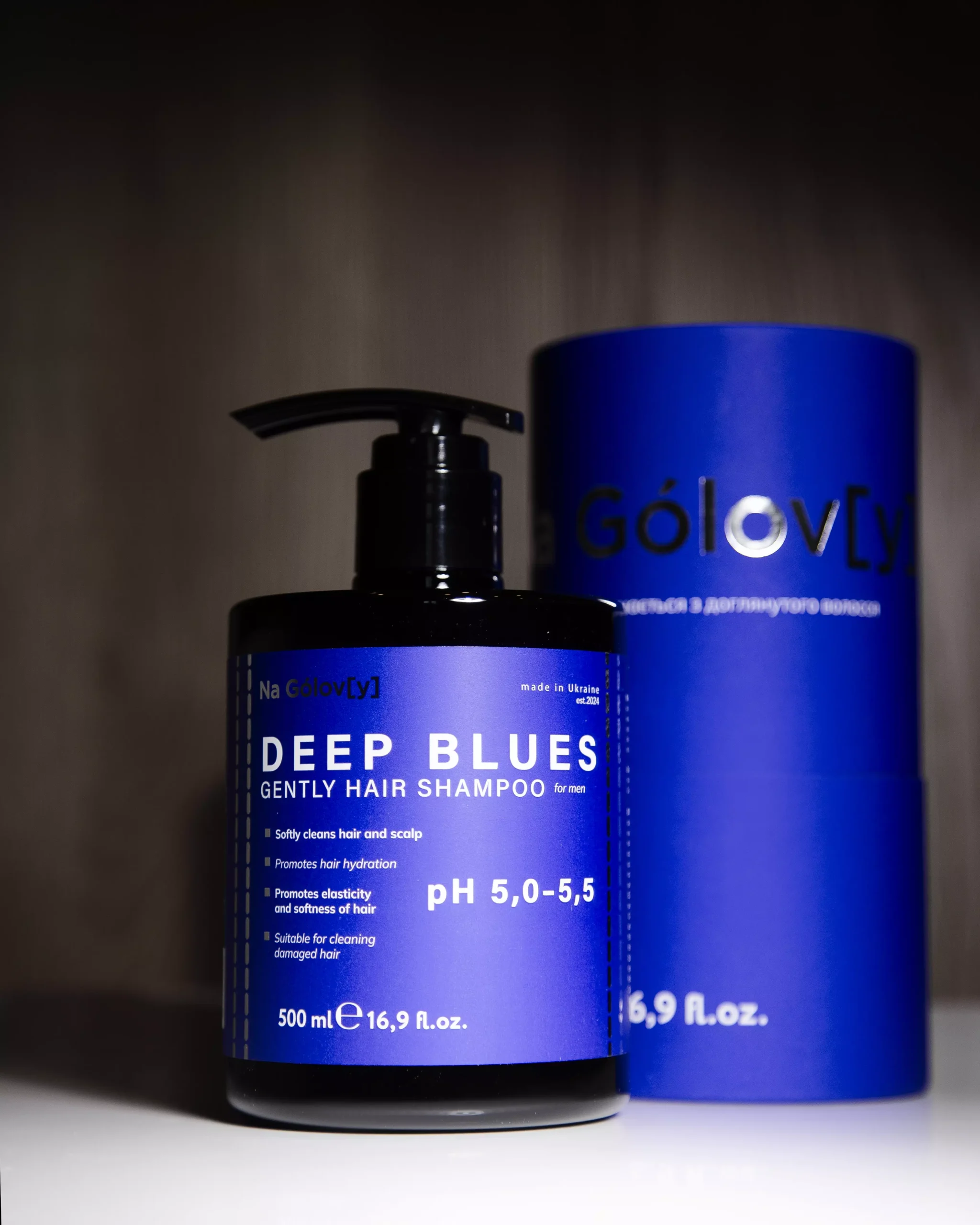М’який шампунь для чоловіків DEEP BLUES від Na Gólov[y] дбайливо очищує шкіру голови та волосся, забезпечуючи глибоке зволоження та зміцнення.